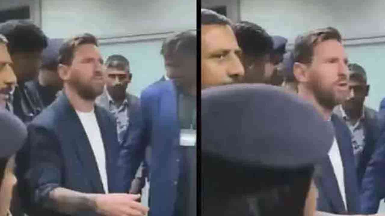 மெஸ்ஸியின் வருகையை எதிர்பார்த்து, அவரை நேரில் காண்பதற்காக ஆயிரக்கணக்கான கால்பந்து ரசிகர்கள் கொல்கத்தா விமான நிலையத்தில் கூடியிருந்தனர்.