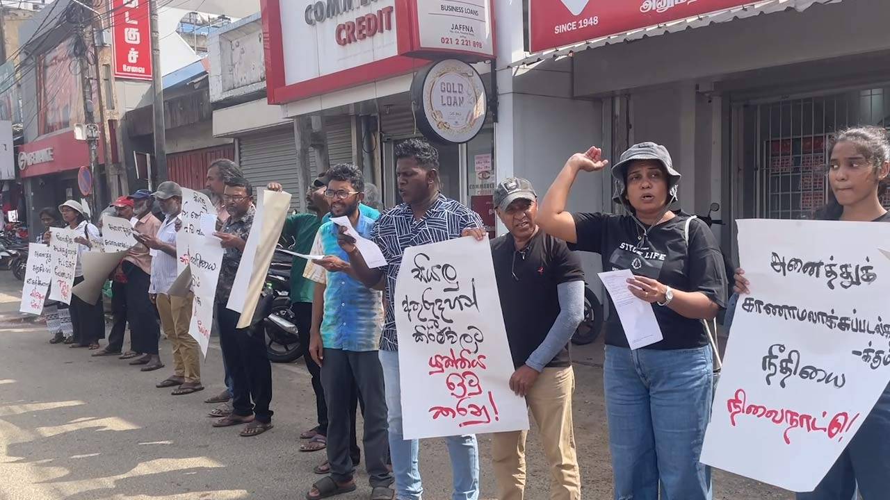 யாழ் மத்திய பேருந்து நிலையத்திற்கு முன்பாக நடைபெற்ற இந்தப் போராட்டத்தில், கோரிக்கைகள் அடங்கிய பதாகைகளை ஏந்தியவாறு ஆர்ப்பாட்டக்காரர்கள் பலத்த கோஷங்களை எழுப்பினர்.