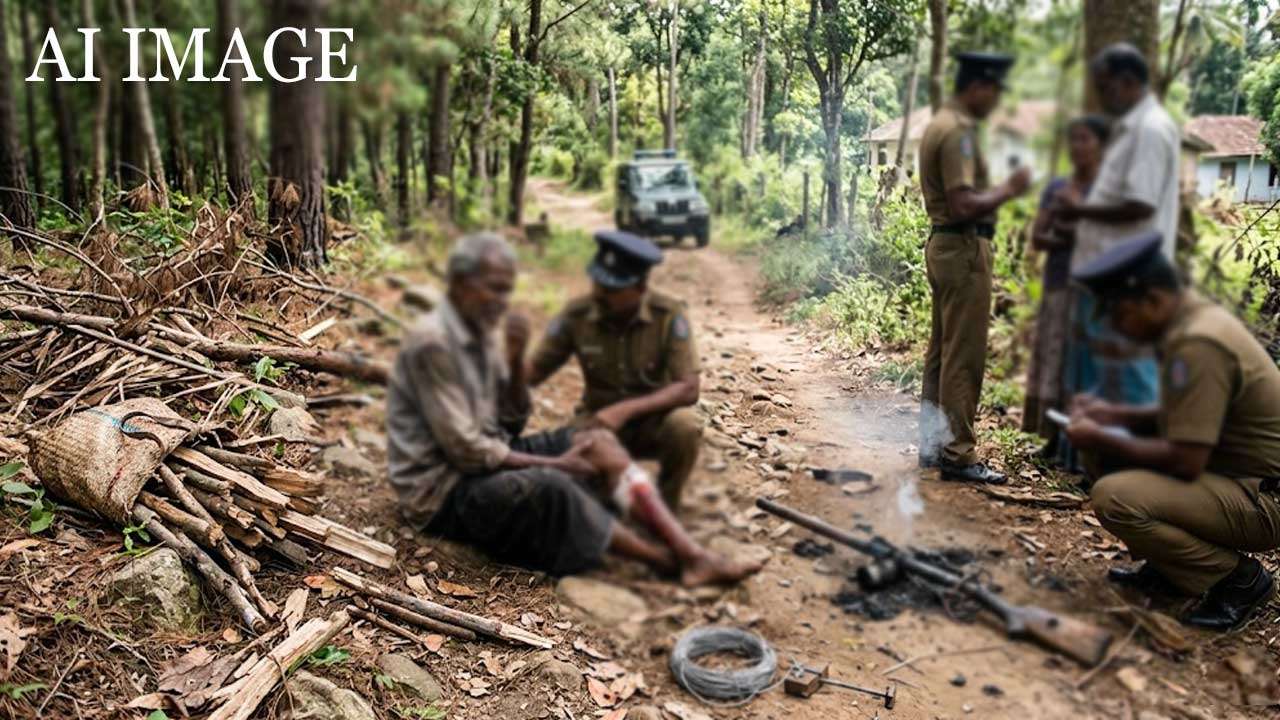 மிருகங்களை வேட்டையாடுவதற்காகக் கட்டி வைக்கப்பட்டிருந்த துப்பாக்கியானது வெடித்துள்ளது, இதில் அங்கு விறகு சேகரித்துக் கொண்டிருந்த நபர் படுகாயமடைந்துள்ளதாகப் பொலிஸாரின் ஆரம்பகட்ட விசாரணைகளில் தெரியவந்துள்ளது.