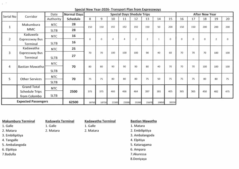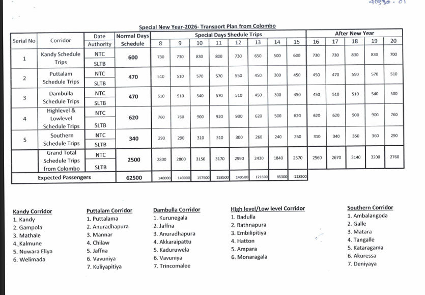 இதன்படி, நாளைய தினம் முதல் ஏப்ரல் மாதம் 20 ஆம் திகதி வரை ரயில்வே திணைக்களம் மற்றும் இலங்கை போக்குவரத்துச் சபை என்பன இணைந்து இந்த விசேட போக்குவரத்துத் திட்டத்தை முன்னெடுக்கவுள்ளன.